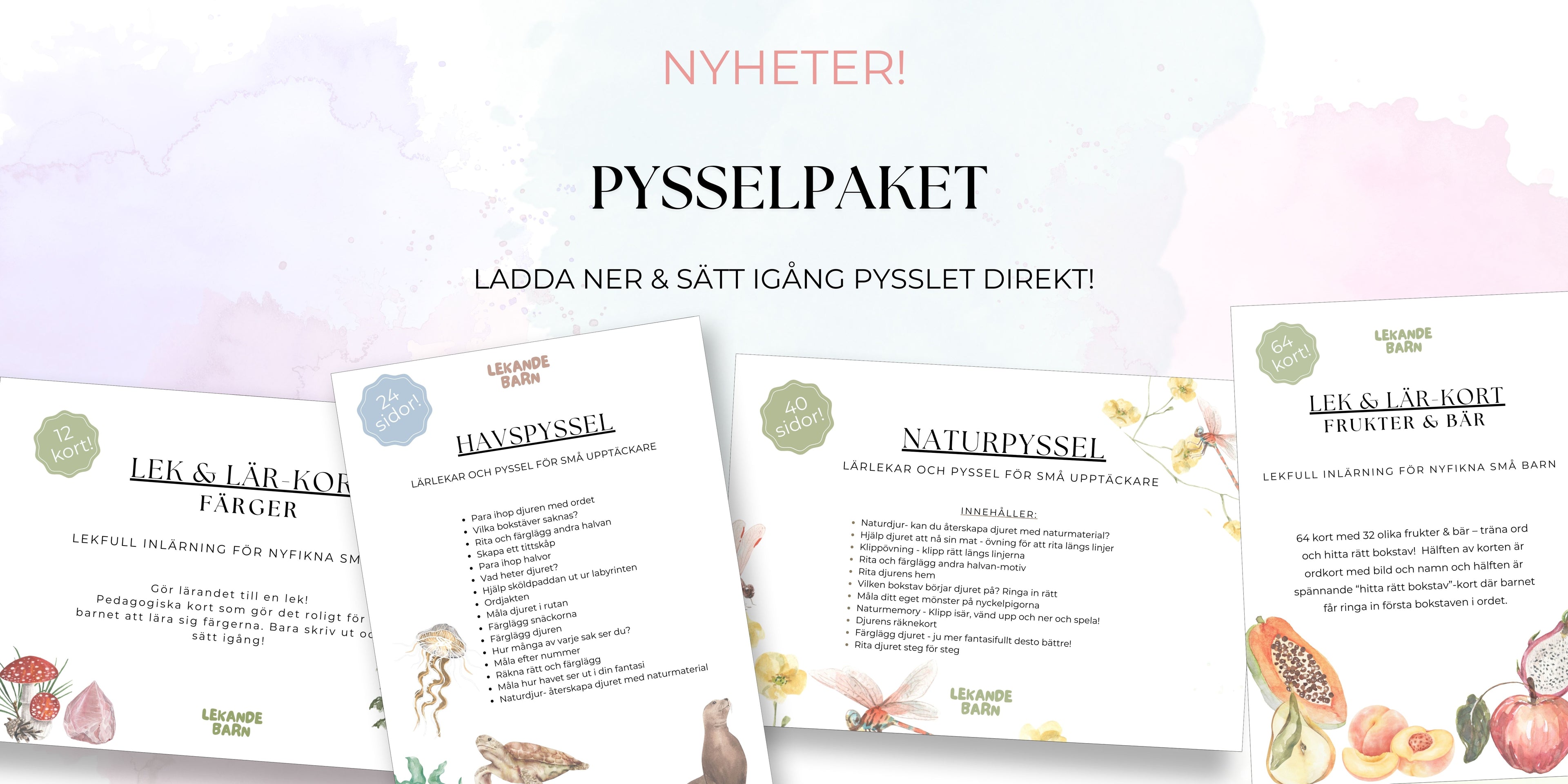Alla produkterna är digitala och kan skrivas ut om man vill. Du får dem direkt till din mejl efter köp. Inget att vänta på i brevlådan, bara att sätta igång och leka!